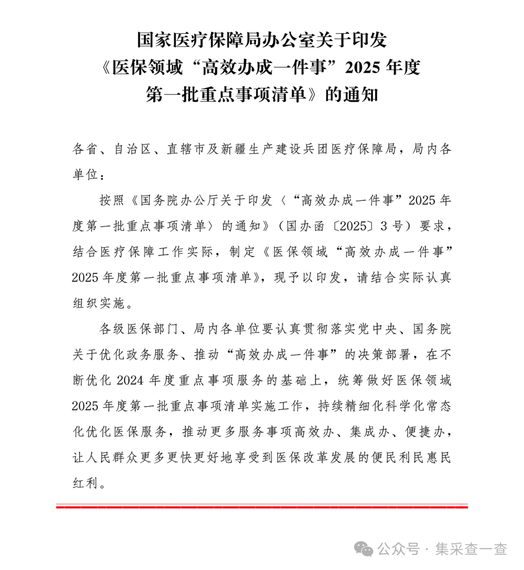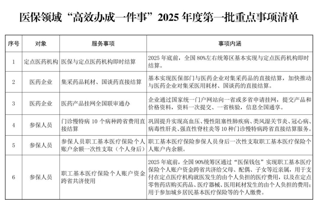 国家医保2025年度第一批重点事项清单