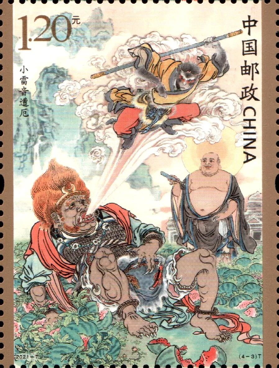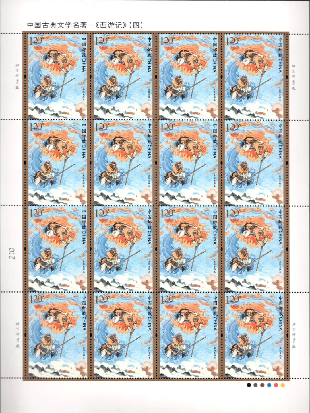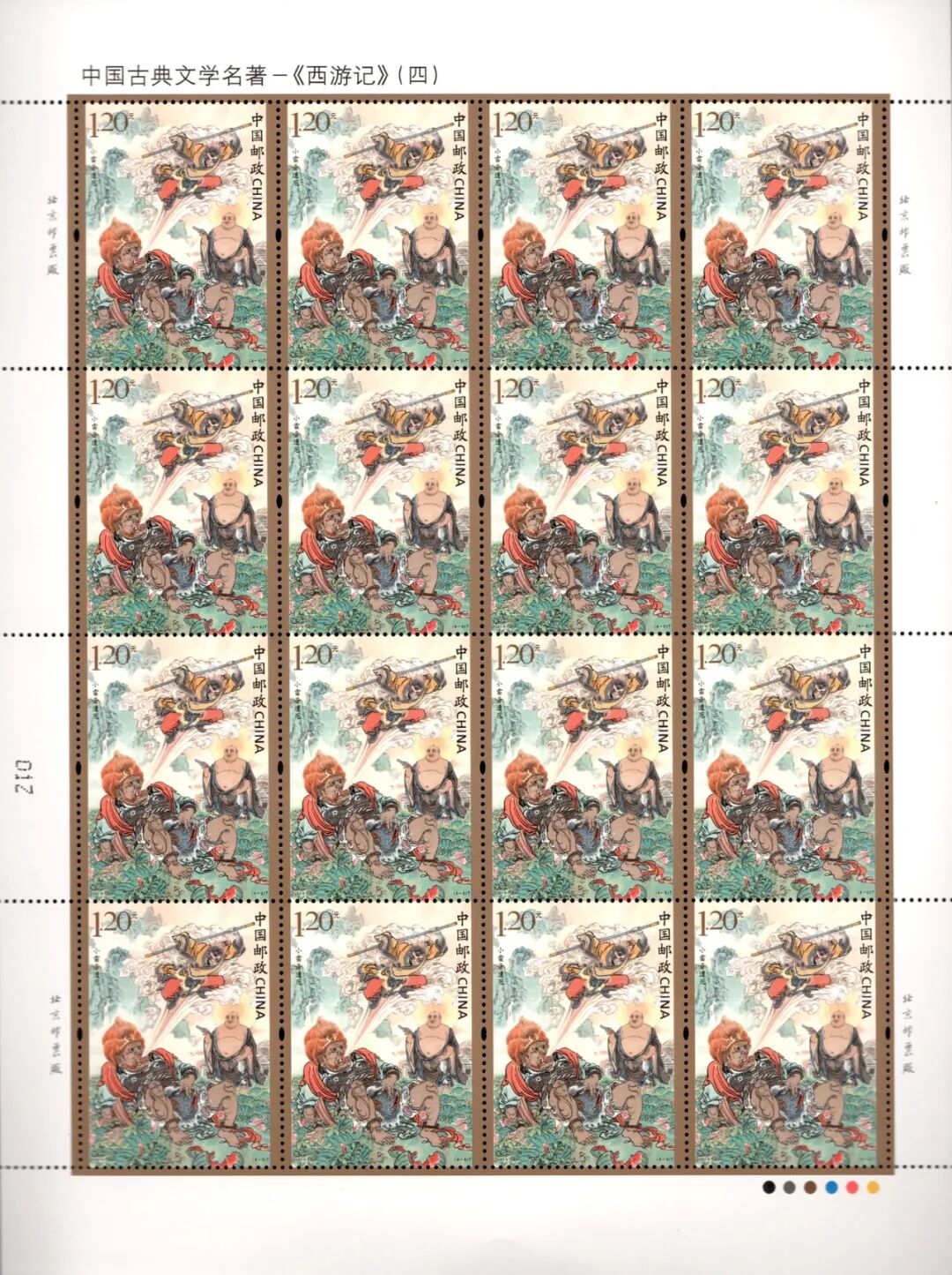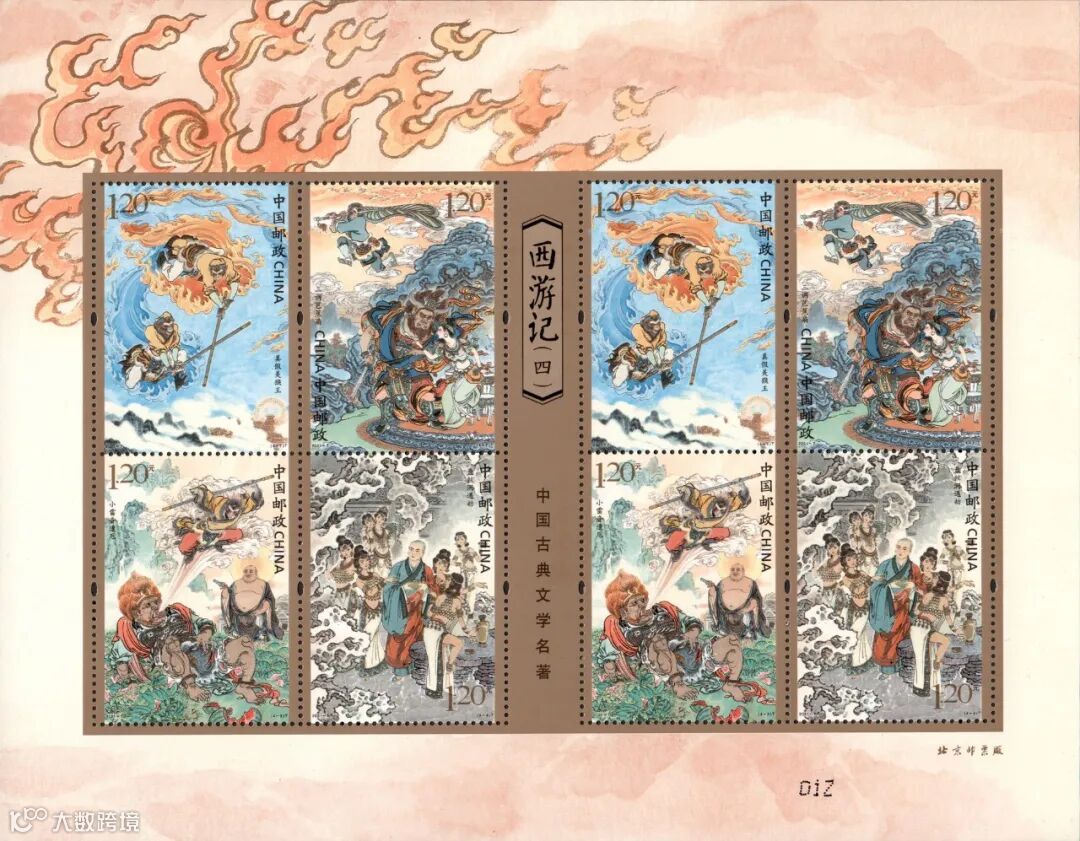 中国邮政定于2021年4月23日发行《中国古典文学名著——西游记(四)》特种邮票一套4枚。邮票图案名称分别为:真假美猴王、三调芭蕉扇、小雷音遭厄、盘丝洞遇劫。全套邮票面值为4.80元,邮票计划发行量870万套,版式二计划发行量105万版,另发行四方连邮票折一本,计划发行量13万本。