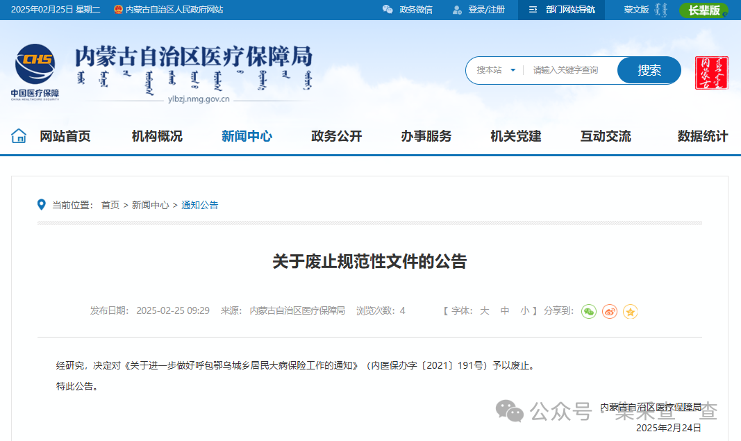 发布日期: 2025-02-25 09:29 来源: 内蒙古自治区医疗保障局