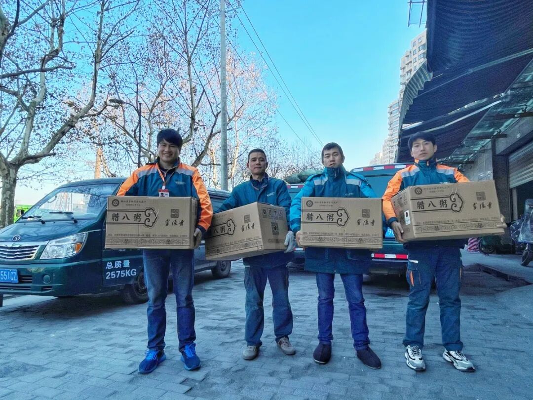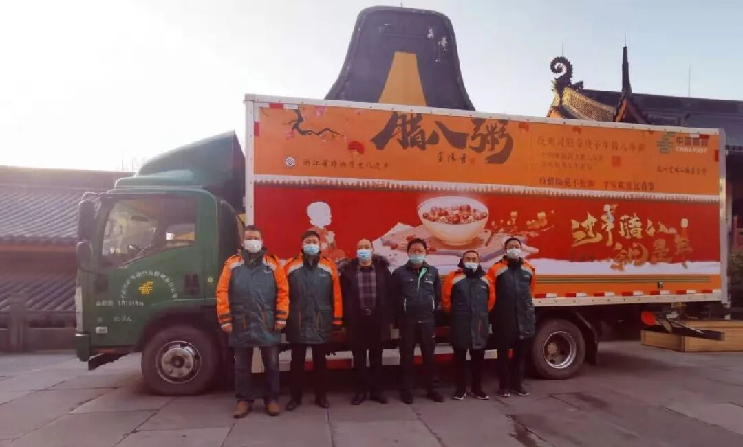 8点左右,这辆满载着腊八粥的邮车就出发了,先去江干区彭埠经营站转驳,然后再分三个区块分送到各个社区。
