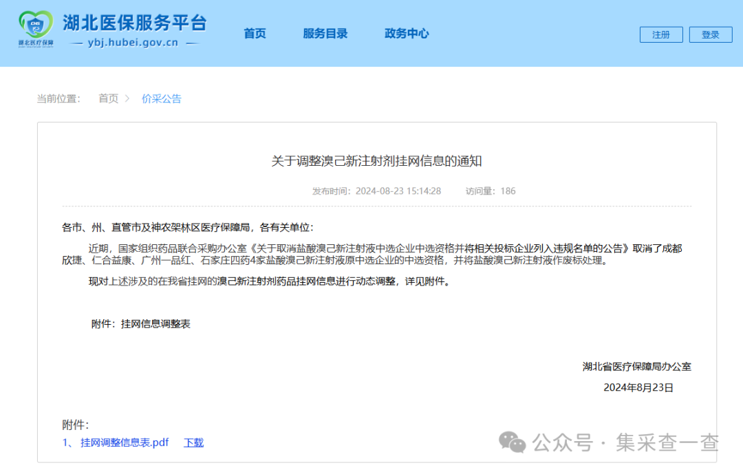 https://ybj.hubei.gov.cn/hubeiHallSt/web/hallEnter/#/NewDetailContent?id=20240823151347000001&type=jc&title=%E4%BB%B7%E9%87%87%E5%85%AC%E5%91%8A