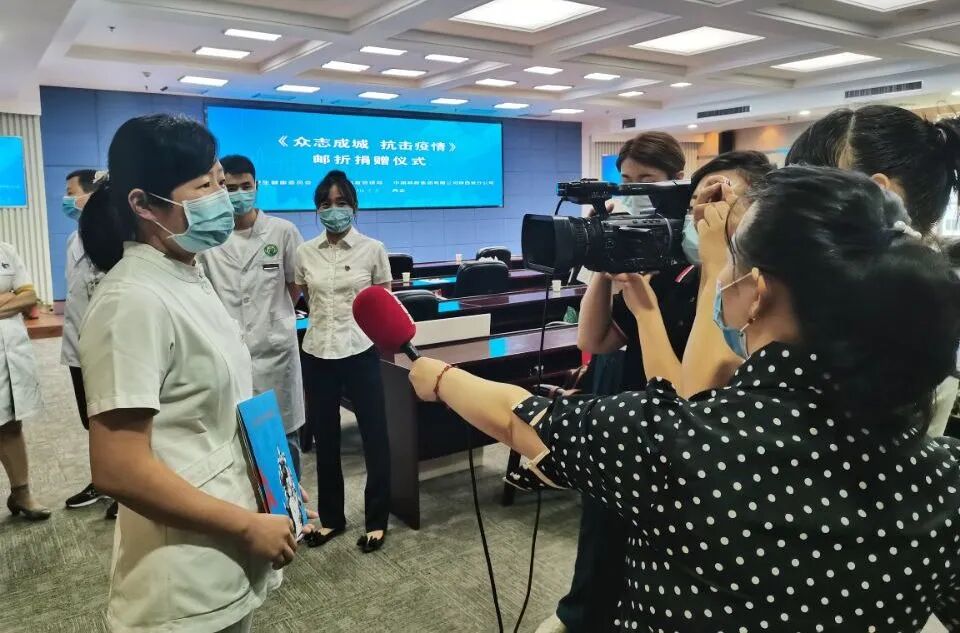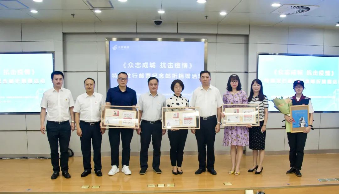 ▲7月2日,安徽省邮政分公司联合安徽省卫生健康委员会共同举办《众志成城 抗击疫情》邮折捐赠活动。