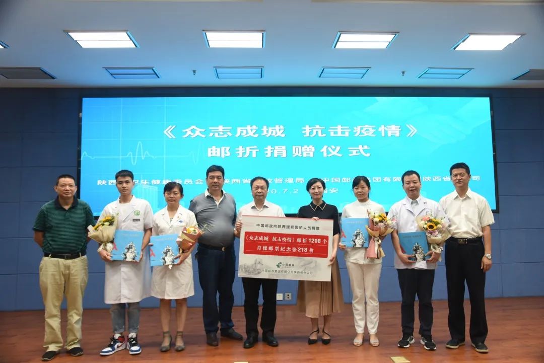 7月2日,在陕西省卫生健康委员会、陕西省邮政管理局、陕西省邮政分公司联合主办的《众志成城 抗击疫情》邮折捐赠仪式上,陕西省人民医院首批援鄂医疗队队长、副主任医师田应选在接过《众志成城 抗击疫情》特别发行邮票纪念邮折时感触颇多地说道。据了解,1208名陕西省援鄂医务人员将分别获得一份特别定制的纪念邮折,其中特制的个人肖像邮票纪念张218枚,捐赠仪式后邮票纪念邮折和纪念张将派送至各市相关医院。
