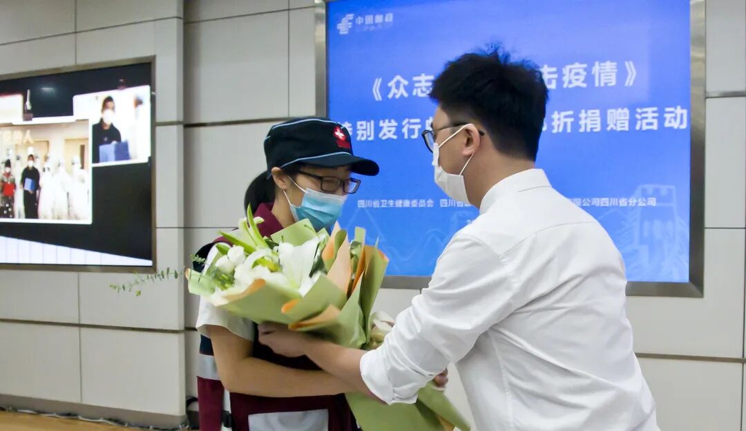 ▲6月30日,四川省卫生健康委员会、四川省邮政管理局、中国邮政集团有限公司四川省分公司联合举办四川省《众志成城 抗击疫情》特别发行邮票纪念邮折捐赠活动。据了解,邮票纪念邮折和纪念张将通过邮政寄递至各相关市州卫健委,并派送到1464位援鄂医务人员手中。