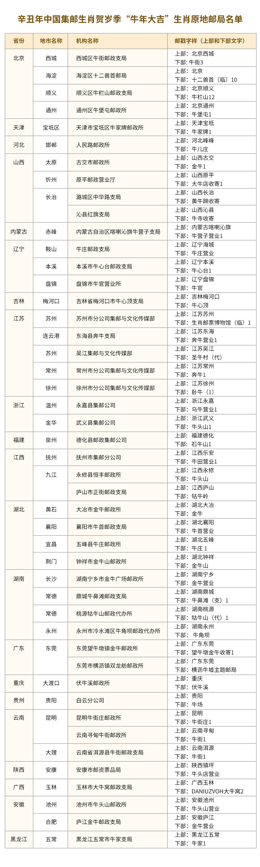 46个和辛丑牛年有关的邮局