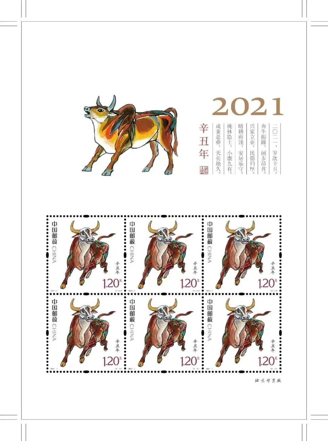 《辛丑年》生肖邮票版式二和小本票