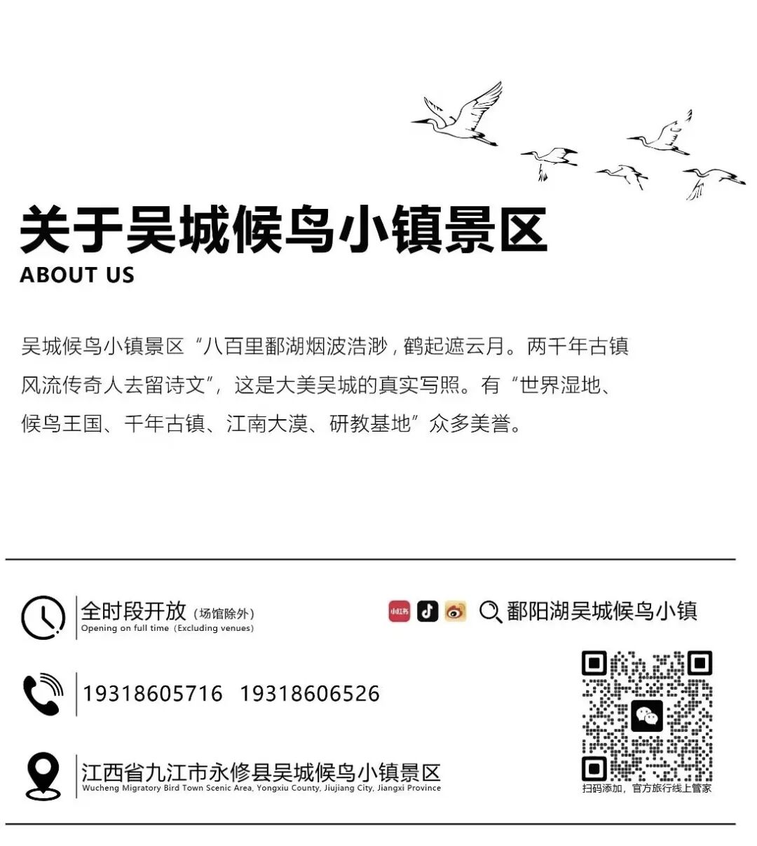 鄱阳湖吴城候鸟小镇景区官方公众账号! 欢迎您来到鄱阳湖吴城候鸟小镇景区