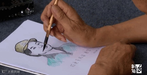 在宝山菊泉文化馆,高老伯正在绘制他的朋友圈《旅程》,素描中的人物是宝山邮政的投递员。