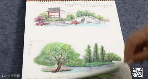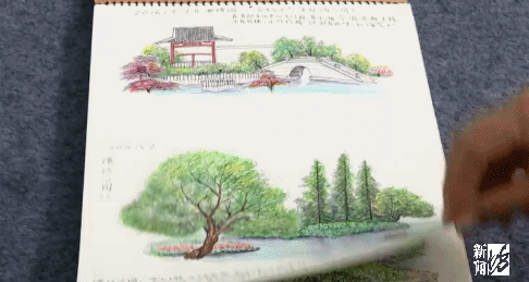 2016年起,高老伯就开始用手中的笔,图文并茂地记录自己的生活。高老伯说,因为当时他没有智能手机,所以他就想到了画画的方式。每到一个地方,就把它画下来,回到家里再加工上色。从松江广富林到顾村公园的荷花,从新冠肺炎疫情暴发到上海援鄂医疗队凯旋,每处美景、每段故事、每个生活的小片段,高老伯都用图画和简单的文字记录下来。