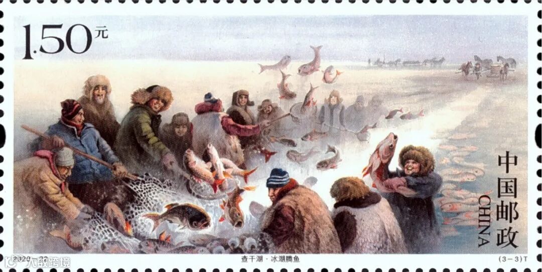 该套邮票采用水彩画的表现方式,同时兼具中国传统绘画的章法和构图特点,用色浓淡相宜、虚实有度,画面通透细腻、层次丰富,形成了独特的审美意蕴,在展现查干湖深厚渔猎文化底蕴的同时,呈现出一幅人与自然和谐共生、相互依存的美好景象。
