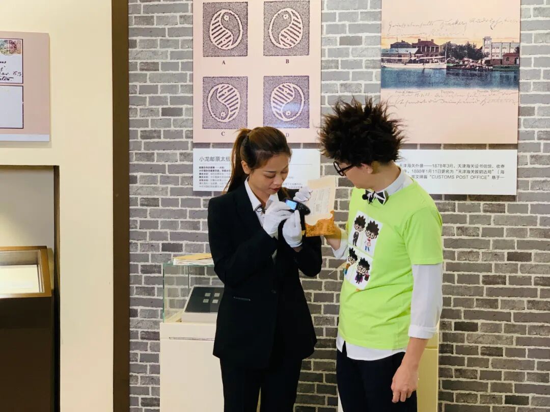 接下来,央视主持人芝麻哥哥、杜悦姐姐和杨米娜、赵梓彤、魏静三位博物馆讲解员带我们进入博物馆,通过丰富的馆藏文物,学习邮票知识,感受邮政文化的深厚内涵。