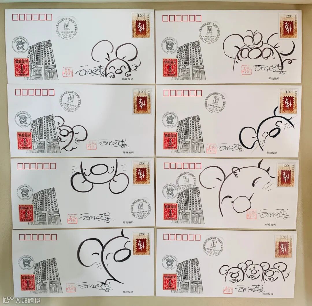 《庚子年》邮票的雕刻师刘博展示了邮票雕刻稿,现场还在纪念封上画起了小老鼠~太可爱了!喏,就是下面这些~