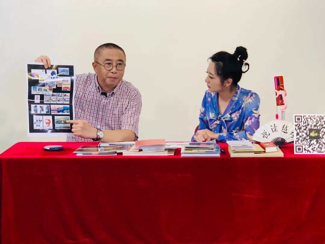 在直播现场,三位邮票设计、雕刻师也大显身手,邮票印制局编辑设计室主任史渊老师展示了他所设计邮票的图片,介绍了《港珠澳大桥》等邮票设计背后的故事。