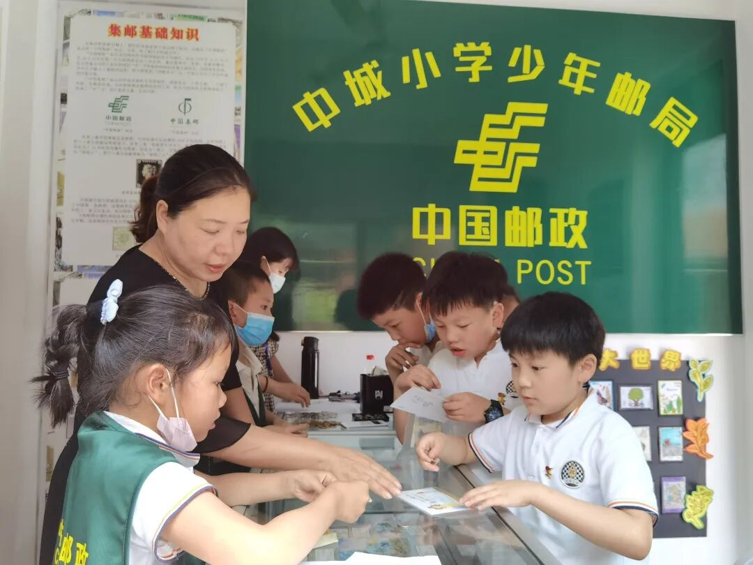 ▲今天正值浙江宁波中城小学少年邮局试运行第一天,宁波邮政工作人员走进校园,为学生们带去了五彩缤纷的集邮世界,最受欢迎的还属刚刚发行的葫芦兄弟邮票。(皇甫亦芬)