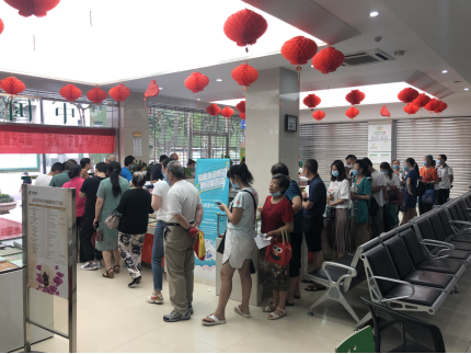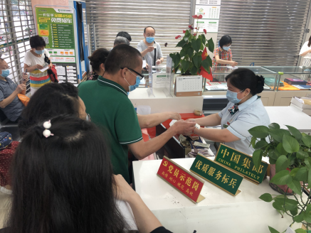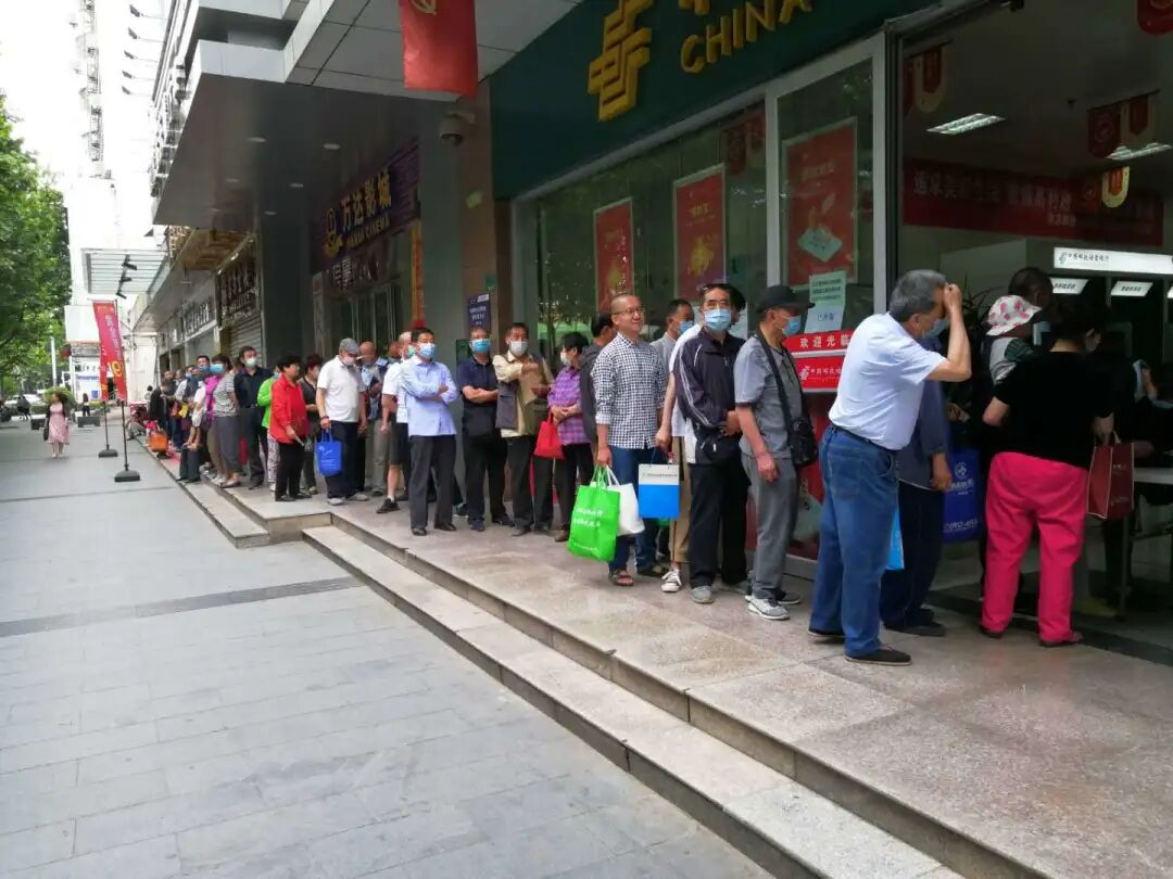 ▲陕西省宝鸡市邮迷一早在邮政网点前排起长队,登记信息,测量体温,购买心仪的集邮产品。(梁凡宁)