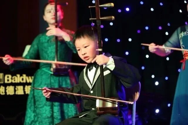 罗伟先生的小孙子罗嗣熠与伙伴一道演奏二胡名曲《赛马》