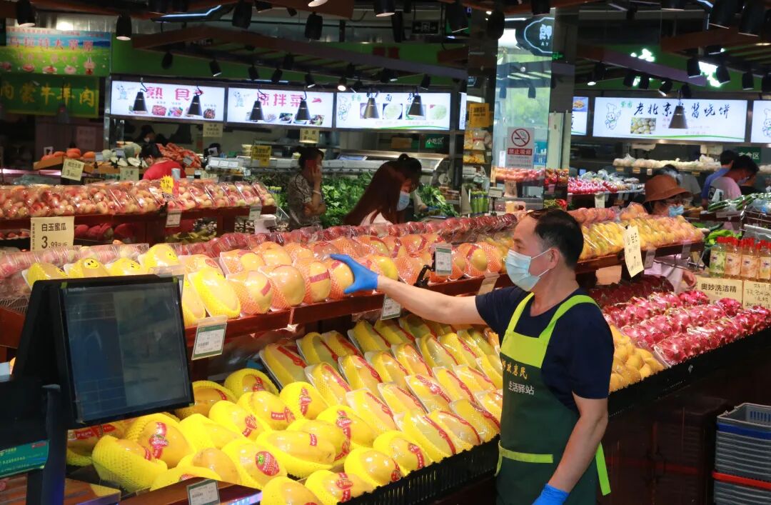 今天一早,在位于北京市朝阳区的邮政惠民生活驿站(亚运村门店),通过一系列严格的防疫检查后,琳琅满目的新鲜水果、蔬菜陆续摆满货架,市民井然有序选购果蔬的场景映入眼帘。“这几天,随着确诊病例人数的上升,我们粗略地统计了一下,仅上个周末到店购买果蔬的客流量较往常每日增加了2000余人,营业额流水同比增长近30%。”北京市朝阳区亚运村邮政支局局长洪飞雪介绍道。