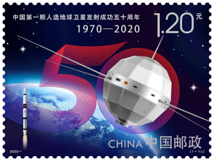 《中国第一颗人造地球卫星发射成功五十周年》纪念邮票于2020年4月24日发行,纪念50年前我国第一颗人造地球卫星“东方红一号”准确进入预定轨道,开创了中国航天史的新纪元,也将《东方红》的乐曲从太空传到了世界各地。