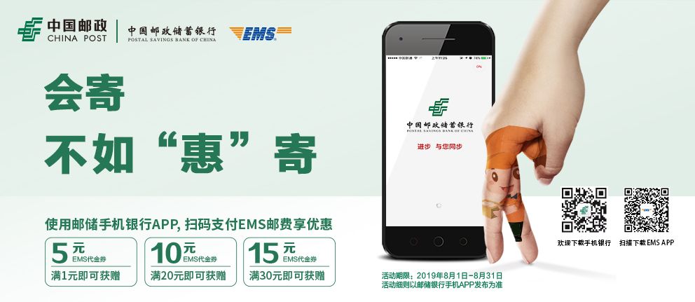 2019年,EMS与邮储银行共同推出优惠寄服务,如使用云闪付APP绑定邮储EMS联名信用卡“七折寄快递”,使用邮储银行APP扫码支付EMS运费“1分钱寄快递”等活动,板块间协同合作,共同推动业务发展。