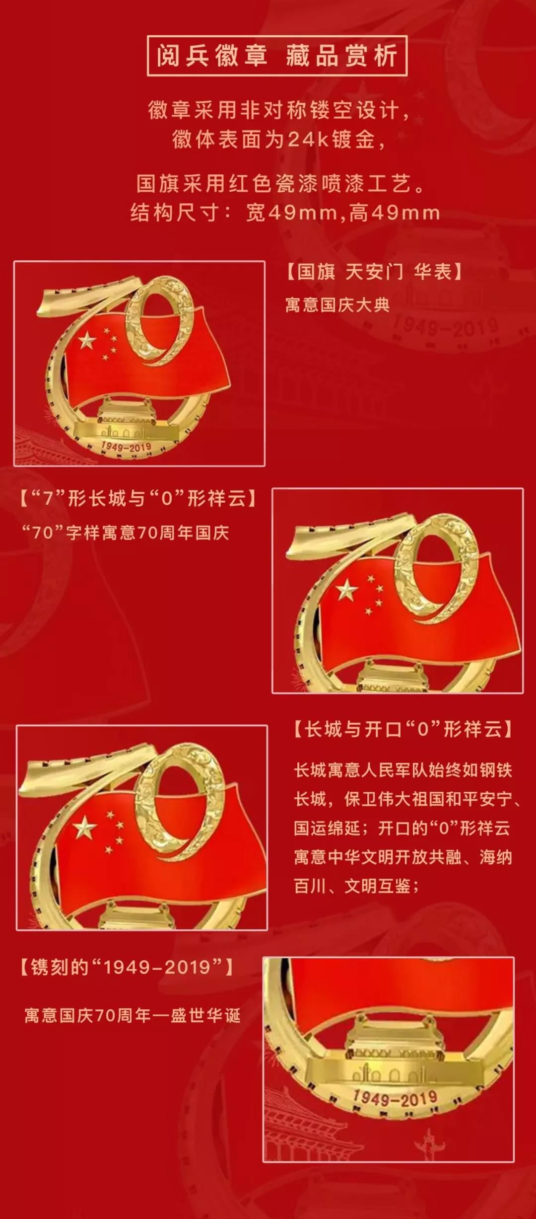 它不仅仅是一个历史事件的记录,更是一个过往时代的烙印。小小的徽章蕴含大大的价值,给每一个关注70周年国庆大阅兵的人留下完美的记忆。铭记新中国70华诞,让我们共同珍藏这份辉煌!