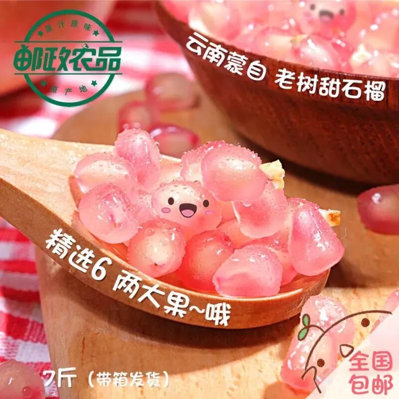 蒙自甜石榴籽粒晶莹似玛瑙,营养价值较高,可食部分占籽粒的71%至87%。营养丰富,含有多种人体所需的营养成分,果实中含有维生素C及B族维生素,有机酸、糖类、蛋白质、脂肪,以及钙、磷、钾等矿物质。果实个头大如碗,籽实饱满,肉厚核小,晶莹如珠,汁多蜜甜。