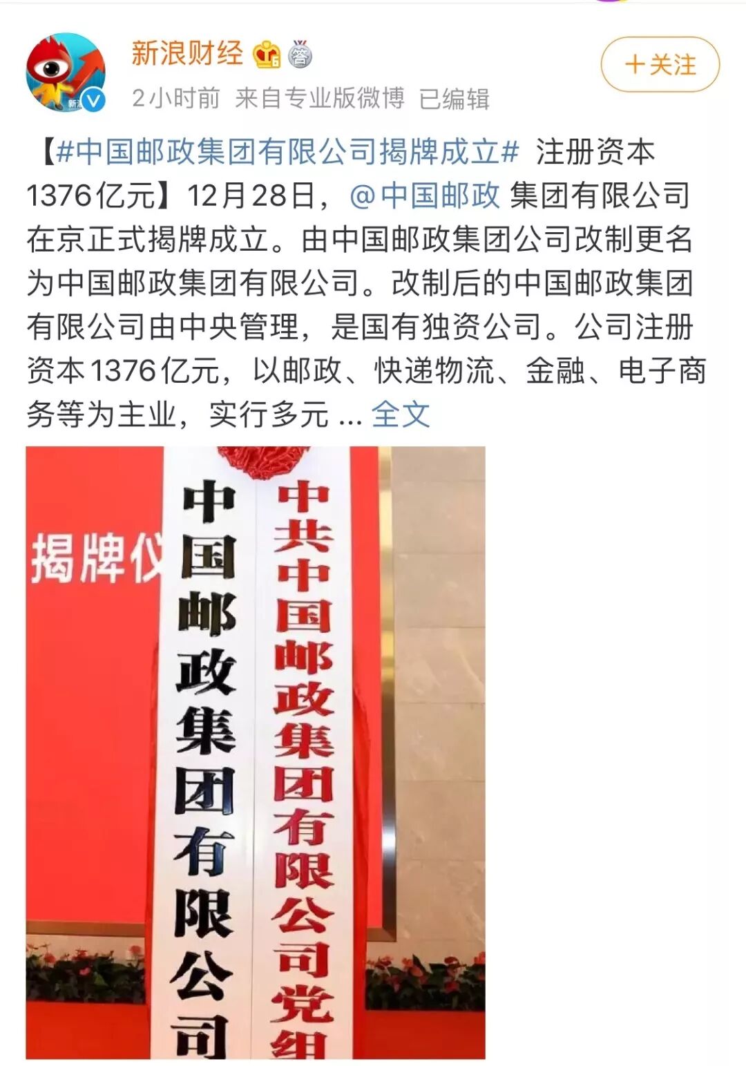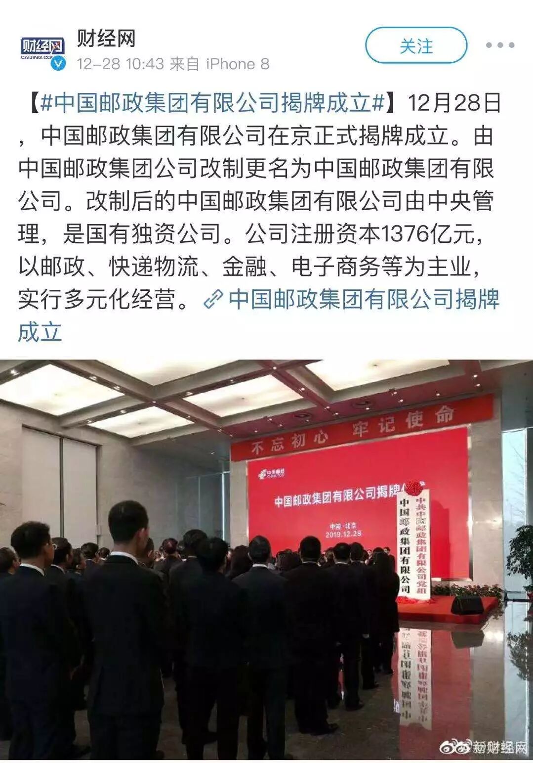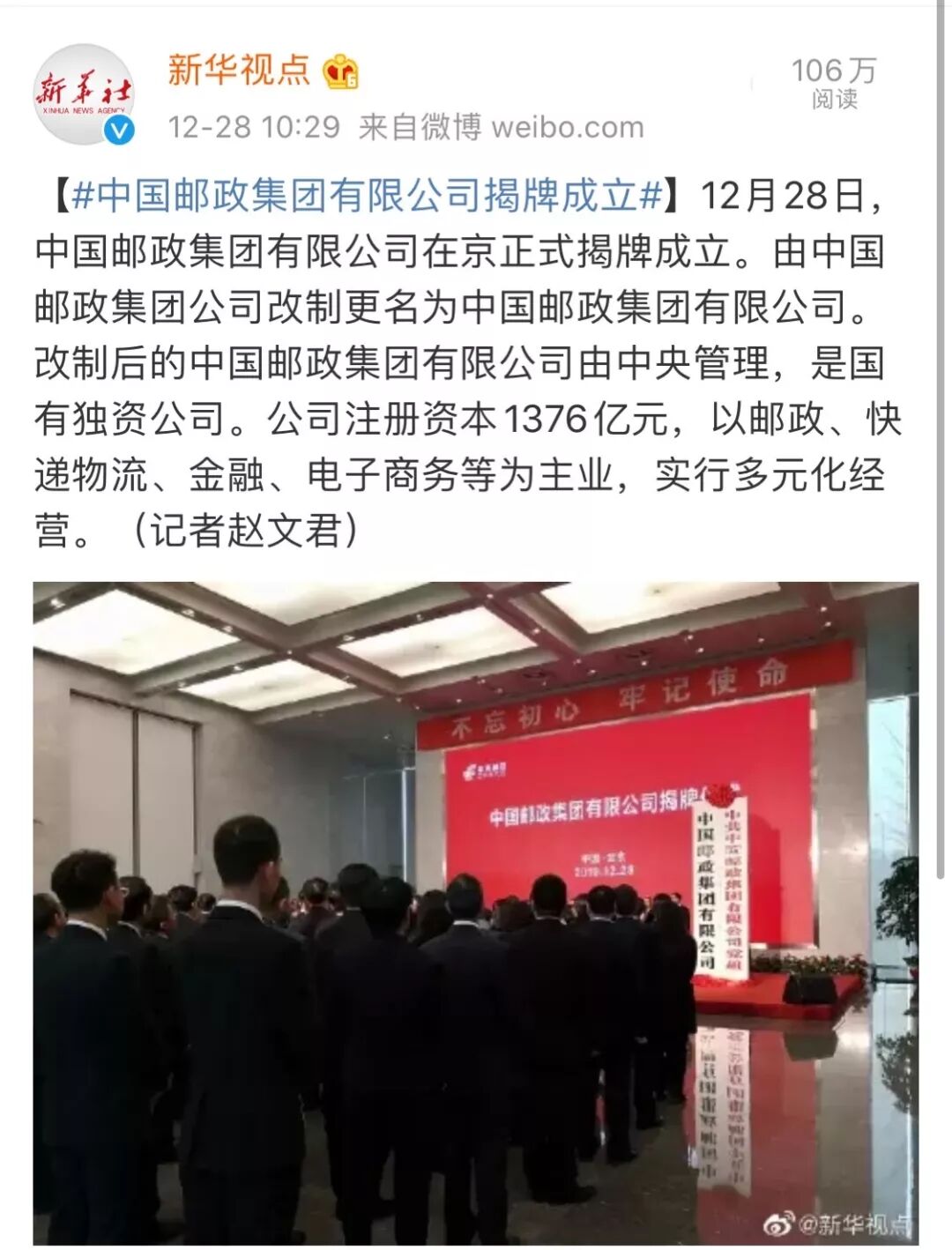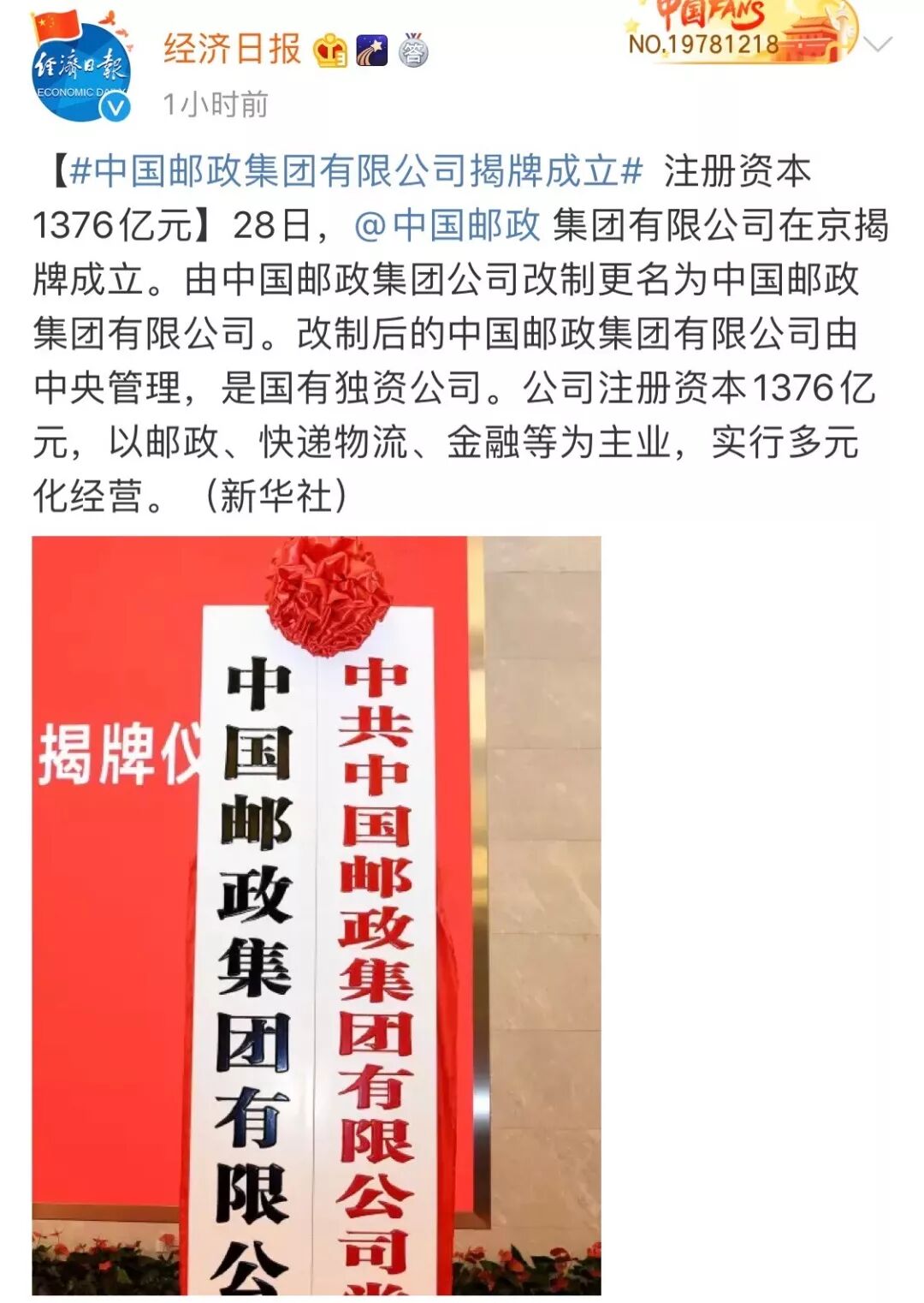 昨晚,刚刚正式揭牌成立的中国邮政集团有限公司在