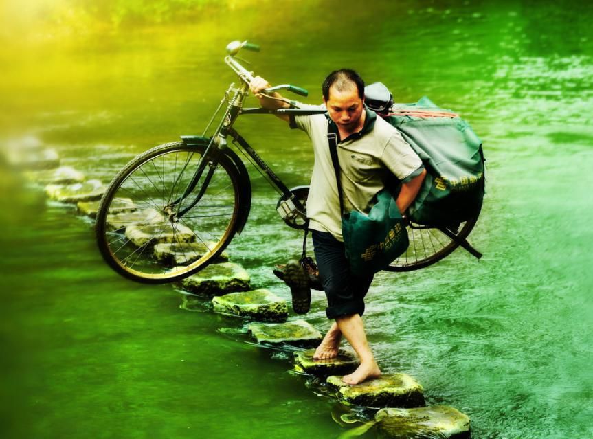 走过几千个日夜,他说肩上扛着的不是自行车,而是整个乡镇的念想。