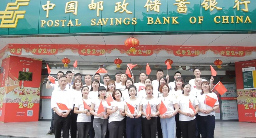 在歌声中,邮政员工手持国旗,随着节奏挥舞双手,讴歌伟大祖国,向祖国深情表白——