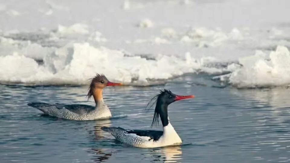 本溪太子河里越冬的中华秋沙鸭