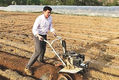 ▲杨明在试验田里起垄。中国邮政集团公司在商洛市扶贫20年来,全面整合企业资源,带动贫困户脱贫约2.3万人。