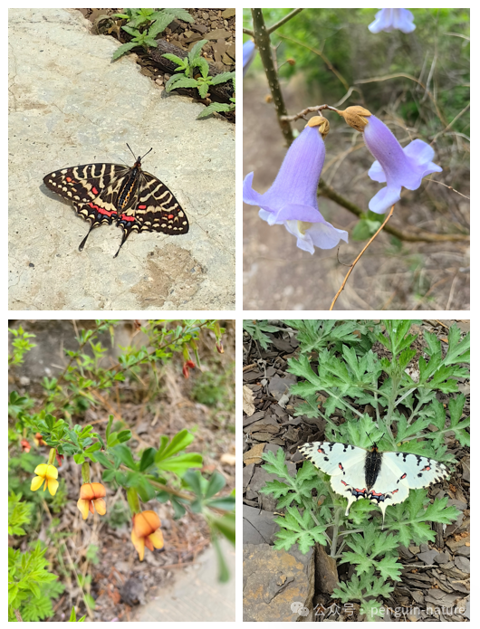 梨枣峪地处迁徙鸟道,通过来来往往的鸟儿们也带来了各地不同的种子,在这里生根发芽。这里不仅是鸟类的天堂,同时也是植物物种丰富的地区,昆虫更是比比皆是,折射出生物多样性丰富的健康生态,更是均衡食物链的自然体现。
