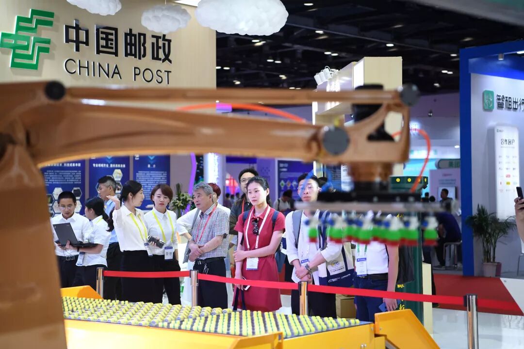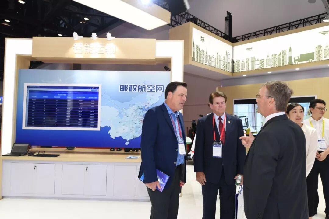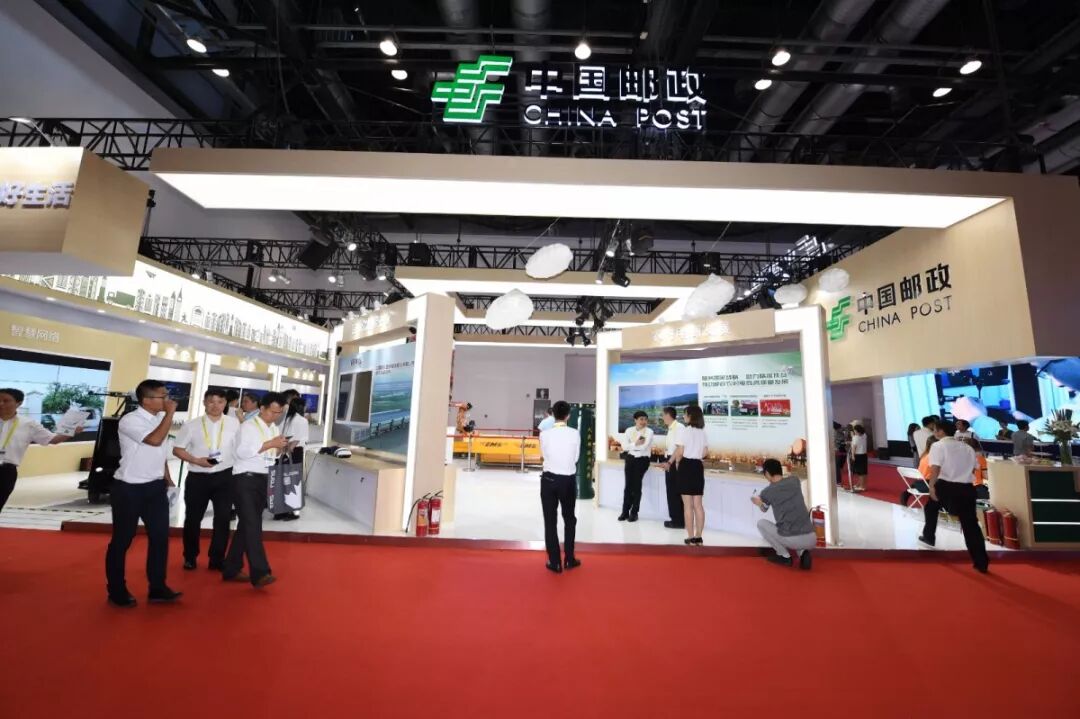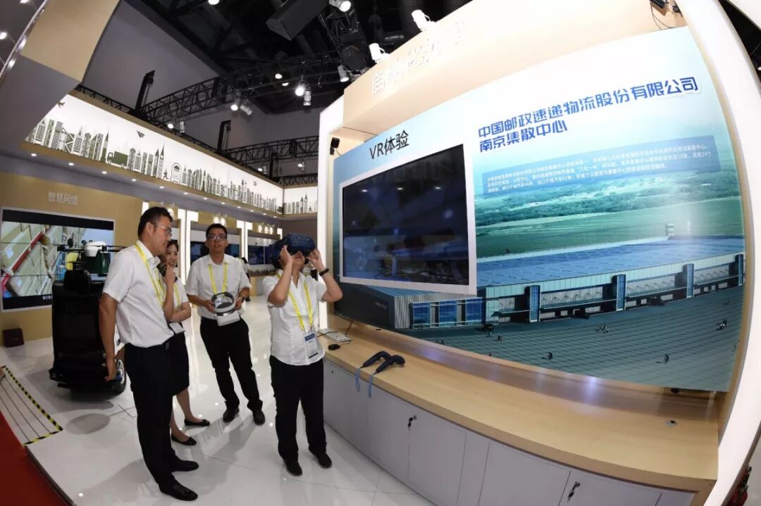 近200平方米的中国邮政展区内,大画幅液晶屏循环播放着中国邮政宣传片。现场还设置了绿色邮政、农村电商发展、智能运输、VR体验、智能网络、智能平台、智能邮局、AR应用智能营销等展示板块。