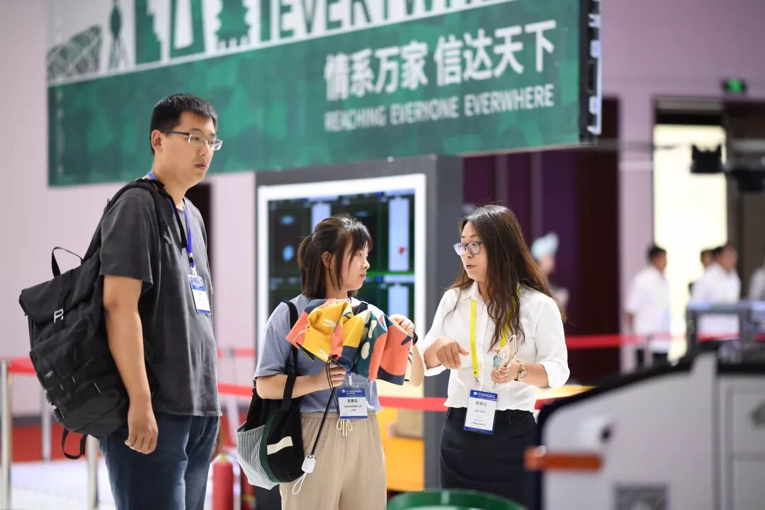 除了多媒体视频、展板和实物展示外,观众还可在“微邮局线上平台”体验自助扫码寄件,在“VR体验区”体验瞬间“穿越”到南京集散中心的生产现场。科技博览会开放互动的性质,给各行业间的互鉴交流提供了最大可能。
