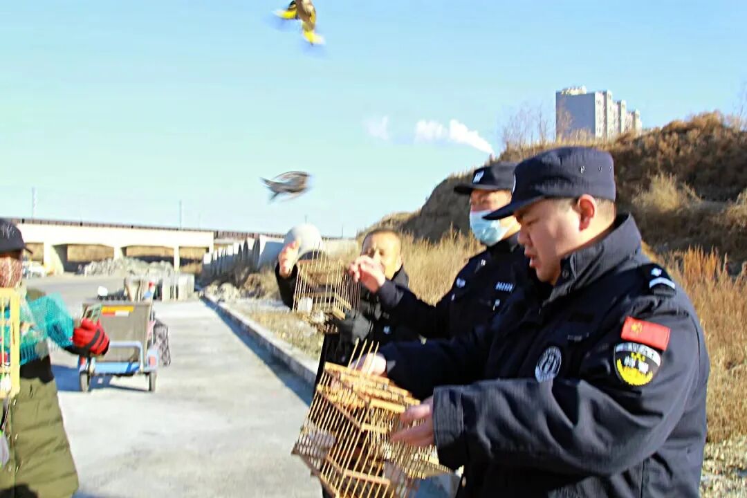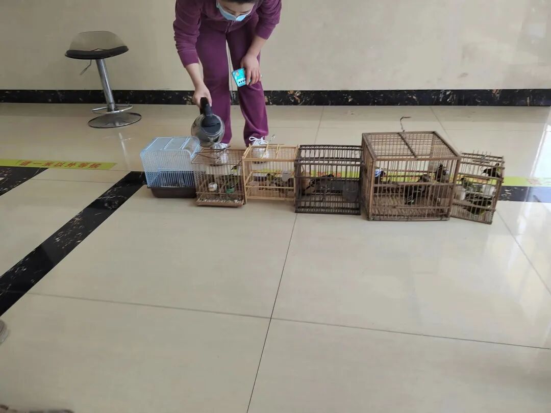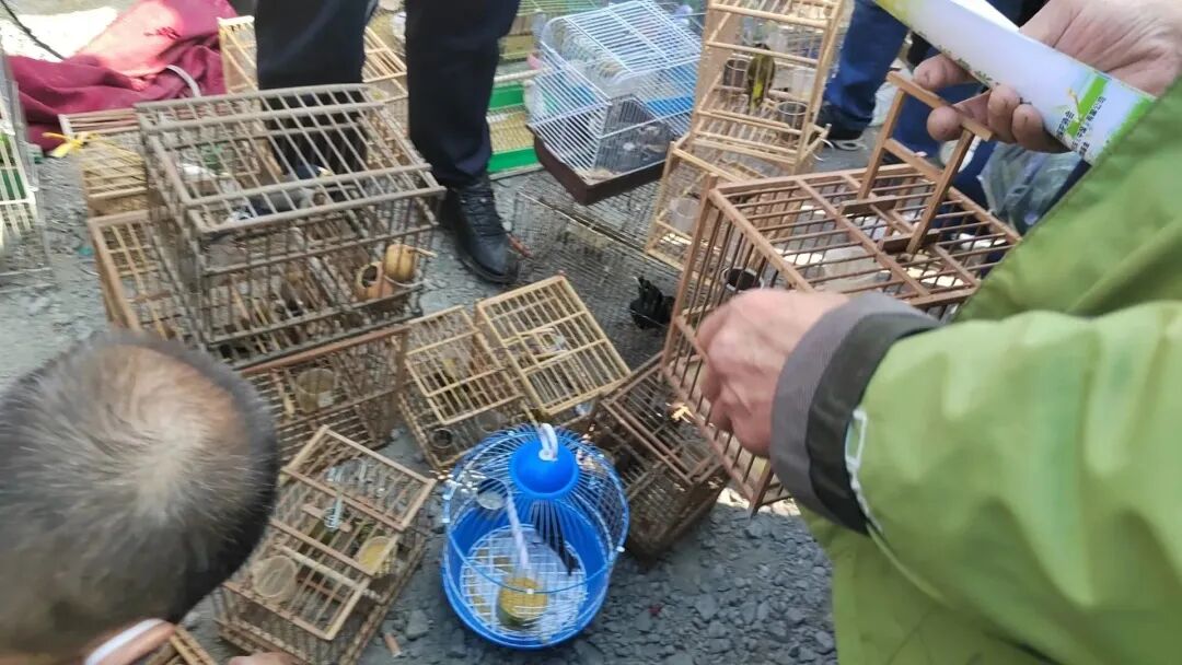 执法人员迅速赶到现场后,将野生鸟类全部收缴