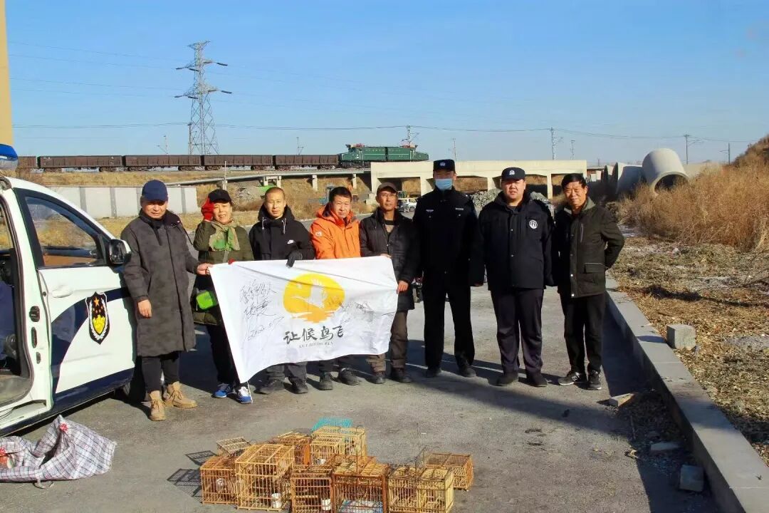 在辽宁鞍山立山公园南坡协助举报打击两处非法捕猎捕鸟点,和相关部门一起解救野生鸟类20只,包括黄雀、煤山雀、大山雀等国家“三有”保护动物,销毁盗猎工具包括10个打笼和1个鸟笼,嫌疑人逃离现场。救助的20只野生鸟类,在深沟寺派出所公安执法部门见证下放归大自然。