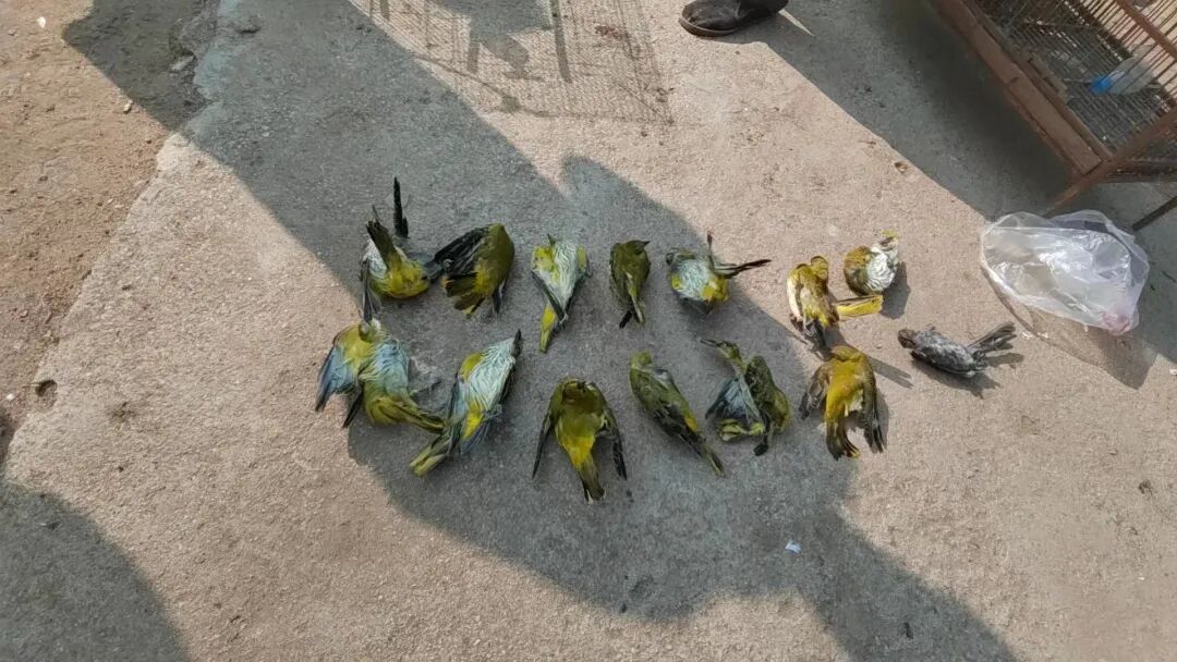 志愿者巡护沙河大集,发现市集内有贩卖野生鸟类现象