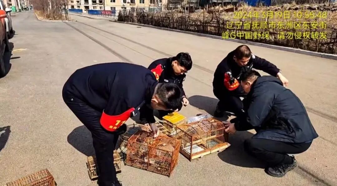 2)协助执法部门在辽宁省抚顺市东城区打击1处非法鸟市,解救野生鸟类27只,包括黄雀、黄喉鹀、煤山雀等。经鉴定和检查,符合野放条件的鸟儿均回归自然。贩鸟者已被执法部门带走作进一步调查。