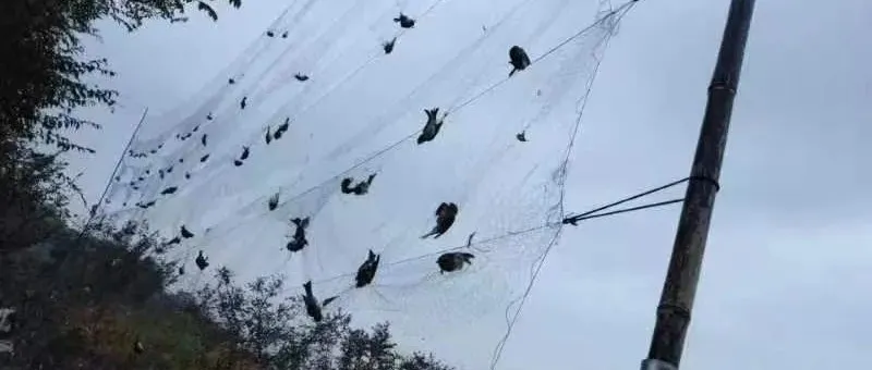 在捕鸟网下发现诱鸟机,鸟儿们被其诱骗落入陷阱