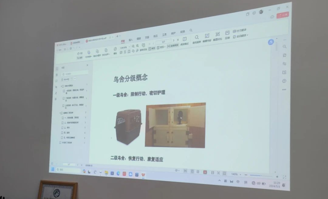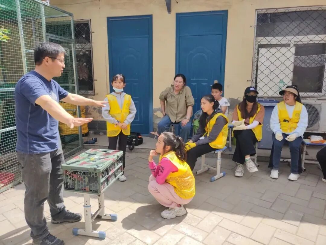 5月1日改造笼舍之前,王老师给孩子们科普了鸟儿的日常救助,以及正在此休养的鸟儿的状况。
