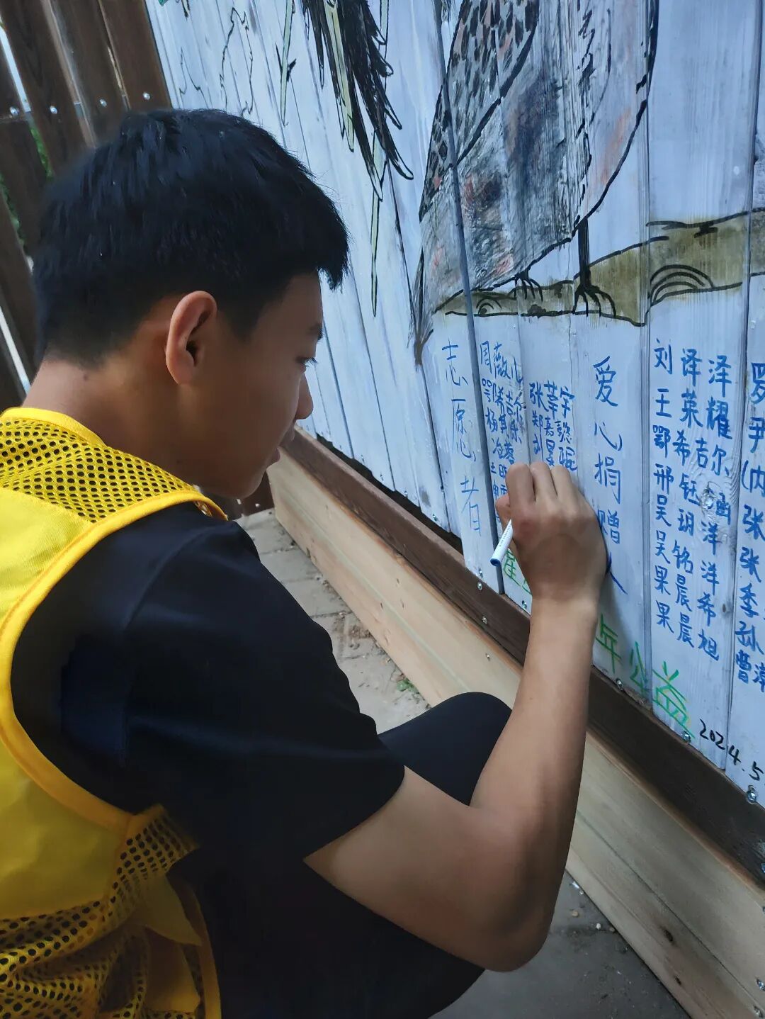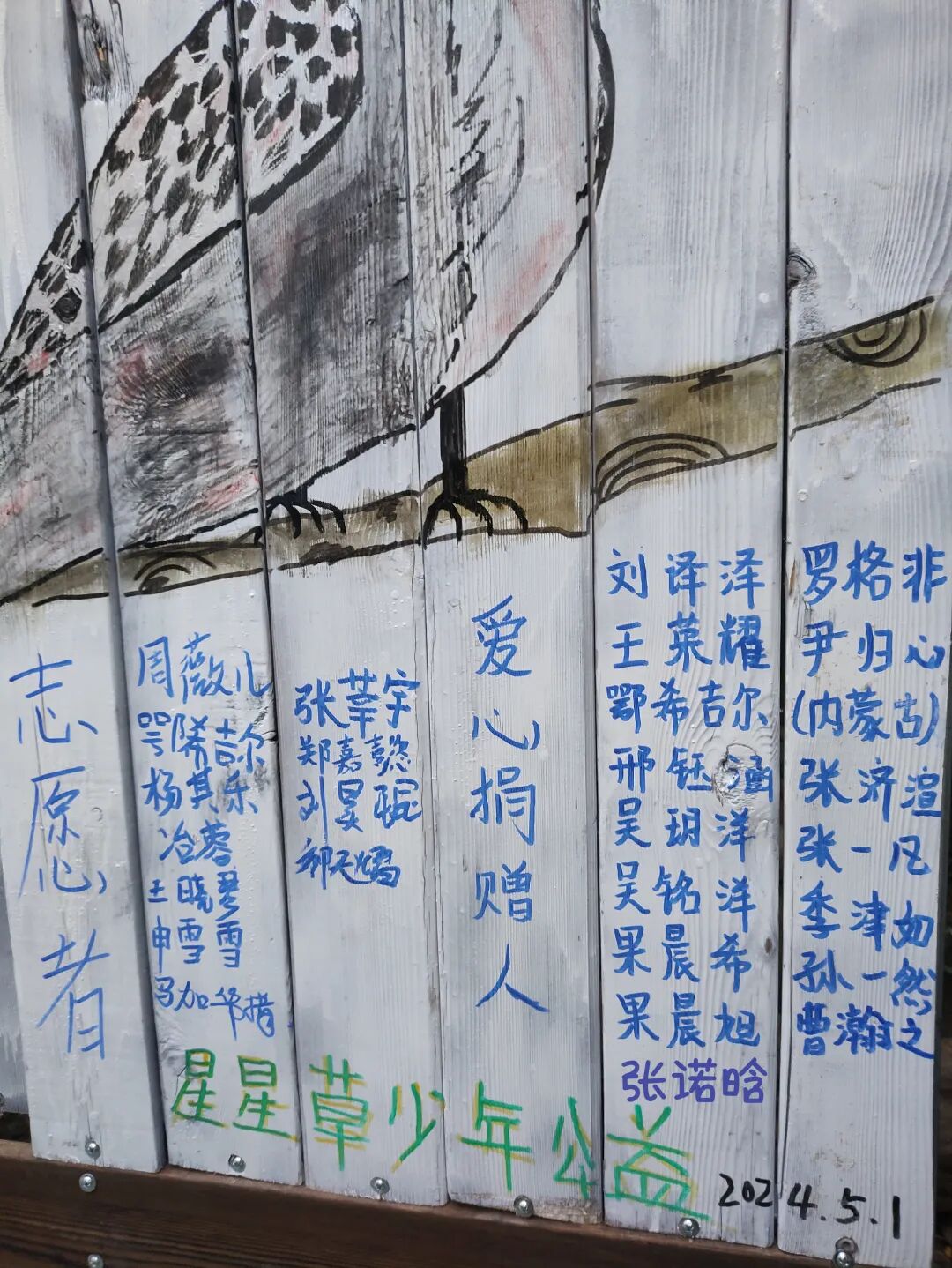 参与的小志愿者在围栏上签下自己的名字。这次还有十多位未能到现场的孩子和家长以捐款的方式参与,也在围栏上留下了名字。❤️