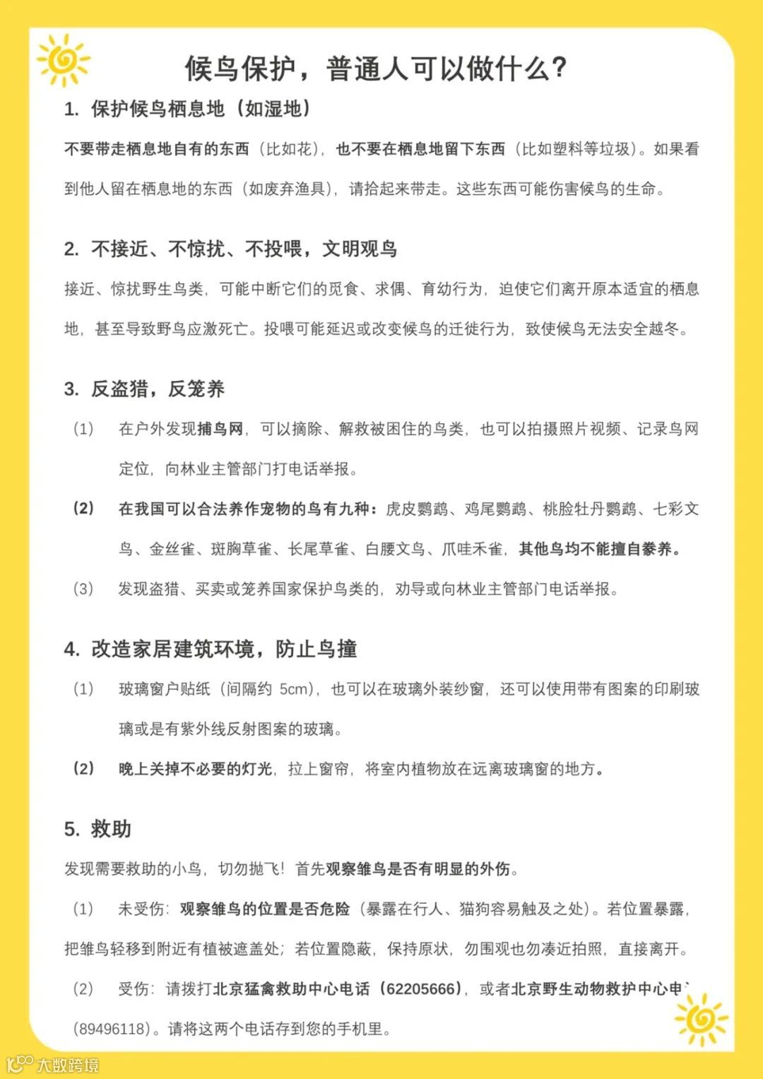 (“候鸟保护,普通人可以做什么”倡议,以北京地区为例。)