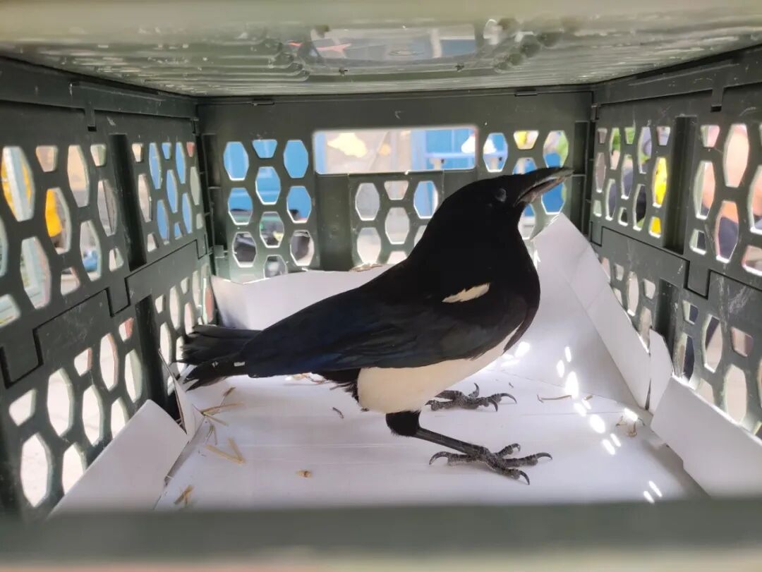 接着在王老师的指导下,一起放飞一只被救助的喜鹊。▼