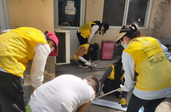 此外,还有四位女大学生志愿者的参与,她们在锯木工作中展现出了娴熟的手法。其中一位还现场连线家人请教施工问题。