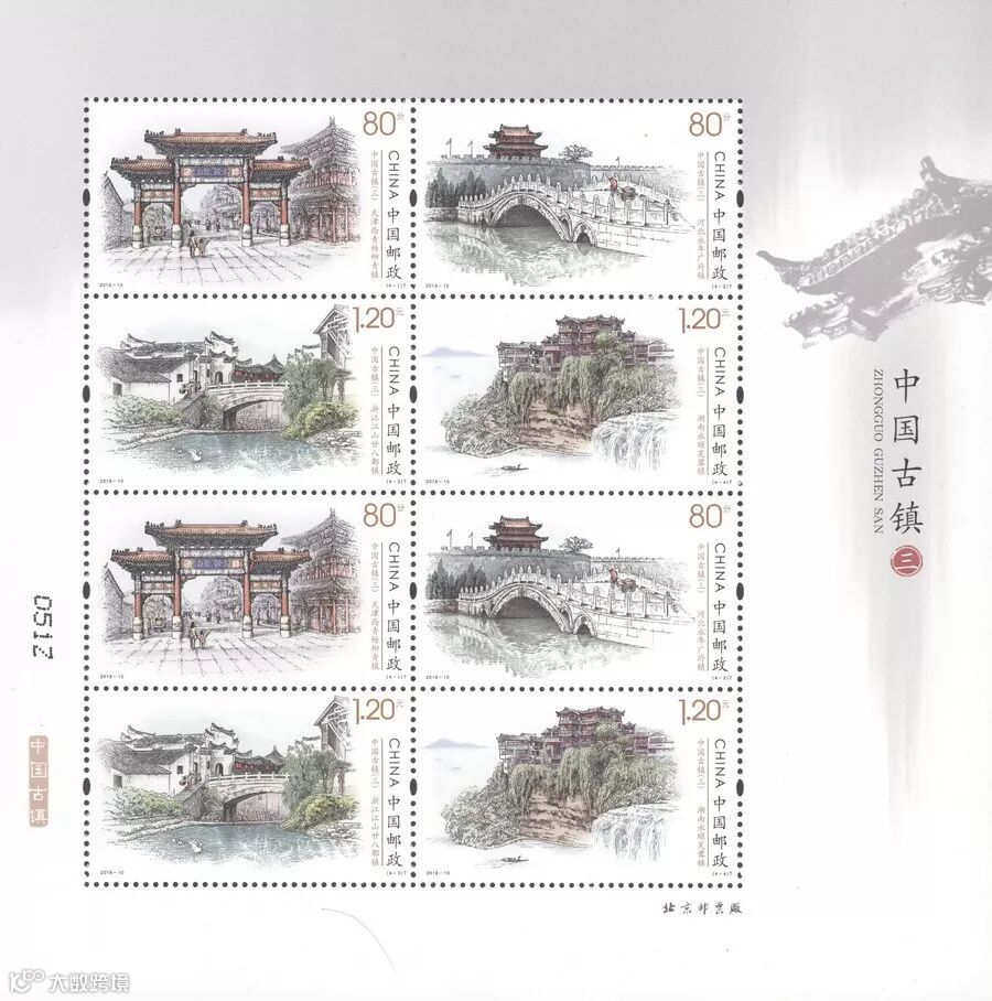 中国邮政定于2019年5月19日发行《中国古镇(三)》特种邮票1套4枚,全套邮票面值为4元。