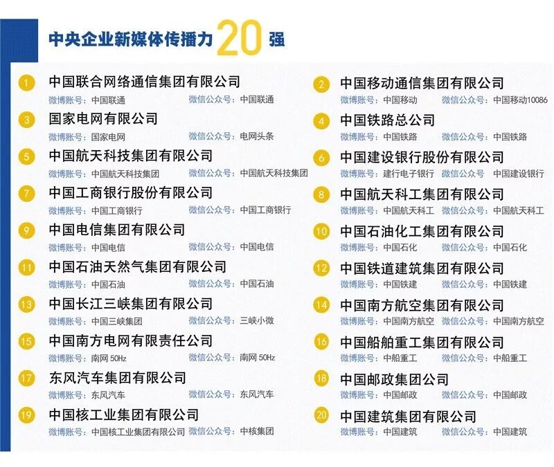 “中央企业新媒体传播力二十强”榜单