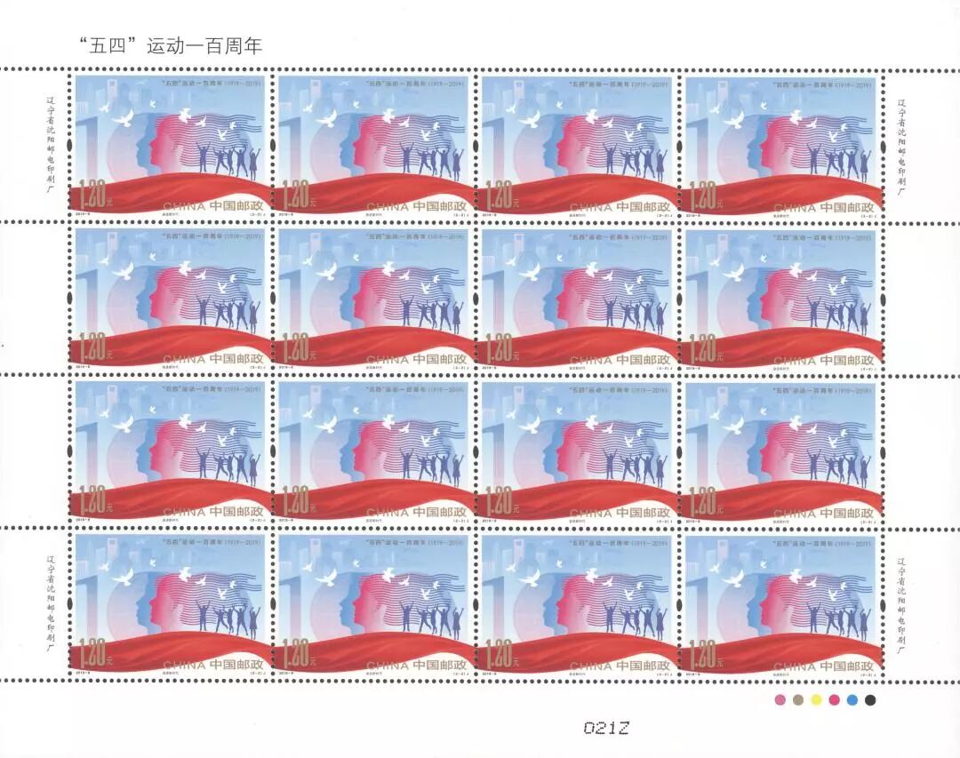 邮票第一图以天安门广场人民英雄纪念碑上“五四”运动浮雕和“五四”青年的典型形象,表现了发生在一百年前的这场伟大爱国革命运动的历史画面。邮票第二图以新时代青年的剪影和代表国家富强、经济发展、社会进步的形象元素,表现了青年一代昂扬向上、奋进新时代的风采,寓意“新时代青年要乘新时代春风,在祖国的万里长空放飞青春梦想”。两枚邮票画面上的数字100创意造型和红色的飘带烘托出纪念“五四”运动一百周年的浓厚氛围与传承“五四”精神的庄严性和崇高性。