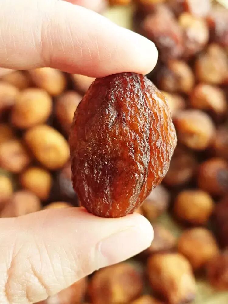 与市面干瘪的杏干不同,新疆轮台的小白杏干个大厚实,甜度恰到好处,小有嚼劲但不会过硬。