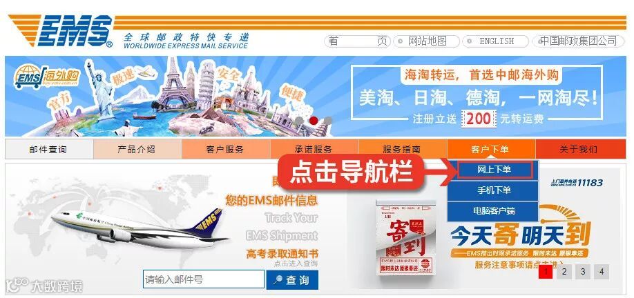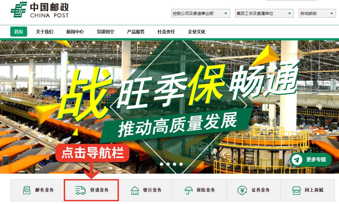 点击网页导航栏「快递业务」即可进入EMS官网办理寄件下单。
