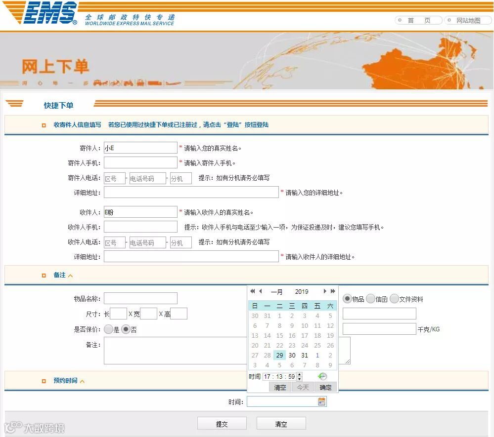使用EMS便捷下单服务