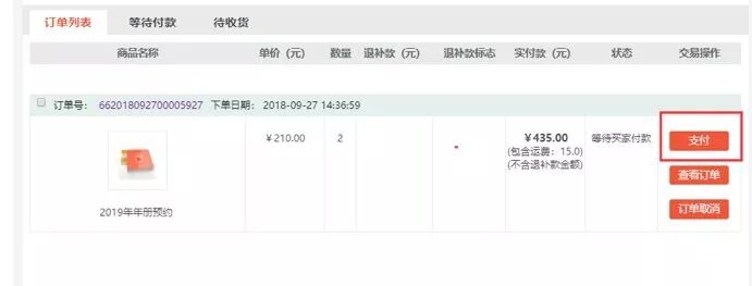 订单提交成功的小伙伴别忘了支付哟!在【用户中心】-【新邮预订订单列表】找到对应订单点击支付按钮即可。支付成功后,订单状态变为“等待卖家发货”,则预订成功。